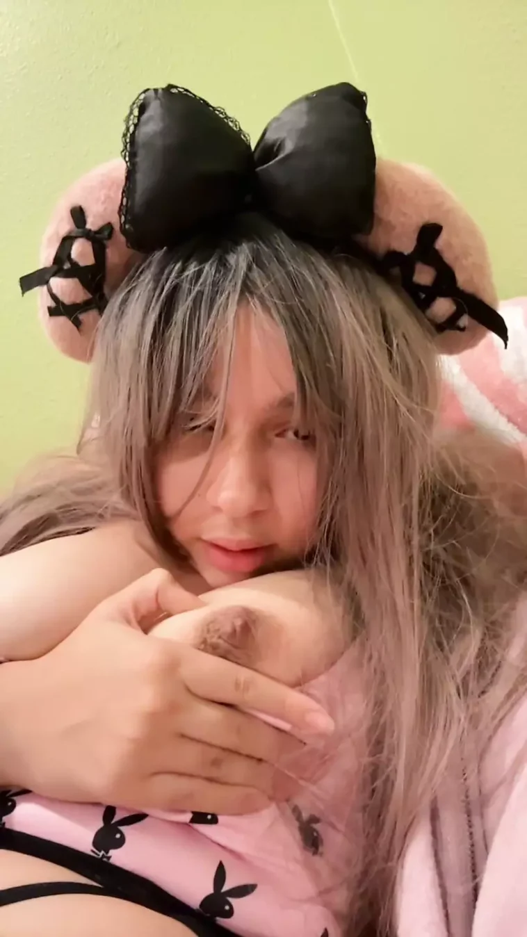 Chubby bunny girl plays with her creamy pussy and sucks her big boobs