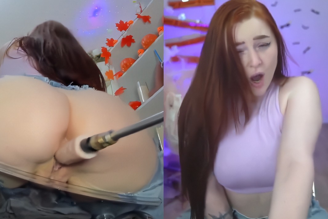 Busty Camgirl Fucked By a Fuck Machine Dual Cam